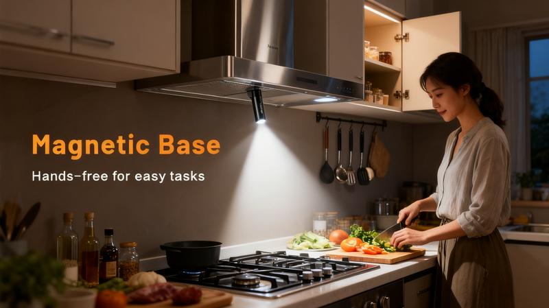 Imagine: Walking your dog at night with a bright beam cutting through darkness 🐶; Fixing your car engine with hands-free magnetic mounting under the hood 🔧; Verifying bills with the UV light while traveling ✈️; Starting a campfire quickly with the built-in fire starter during outdoor trips 🔥; Even chopping veggies in the kitchen with it attached to your cabinet (no more fumbling with handheld lights) 🍳. This flashlight fits every moment.